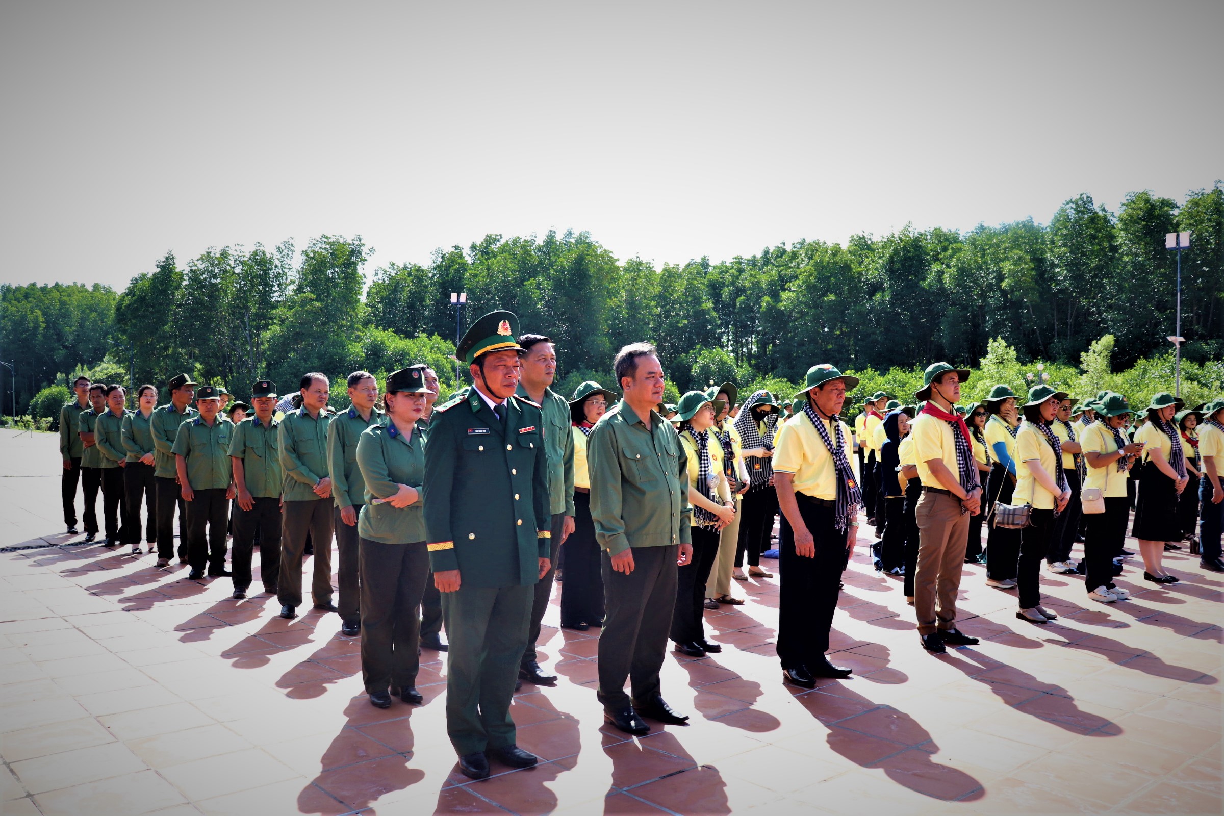 Quang cảnh Lễ chào cờ tại Cột cờ Đất Mũi của Đoàn cán bộ Dân vận tiêu biểu TP Hồ Chí Minh