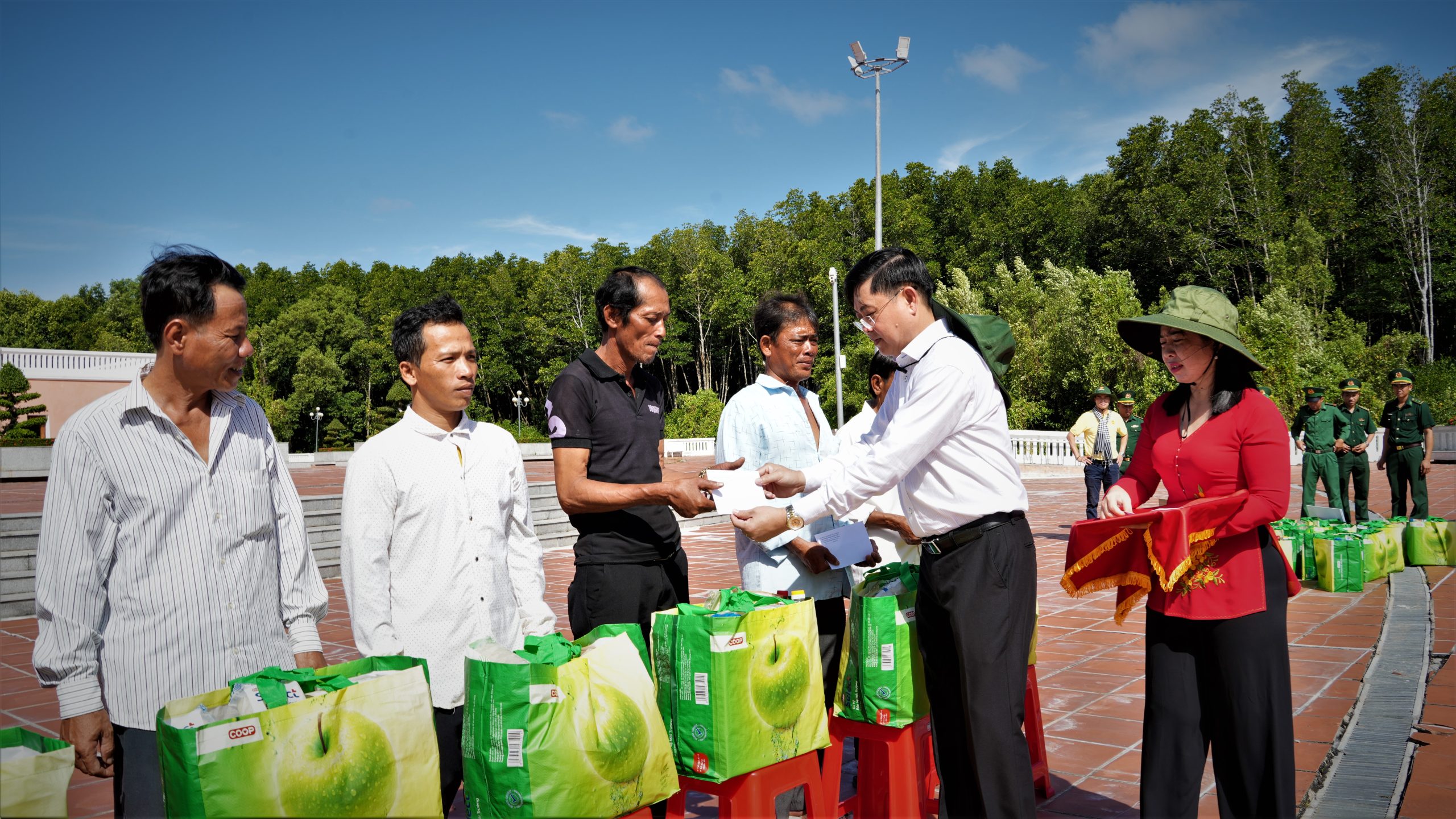 Ngay sau lễ chào cờ, đoàn công tác đã triển khai nhiều hoạt động an sinh xã hội ý nghĩa như trao 200 lá cờ Tổ quốc cho ngư dân “vươn khơi bám biển”; tặng 2 tivi cho Đồn biên phòng Đất Mũi; trao 50 phần quà cho cán bộ, chiến sĩ và ngư dân có hoàn cảnh khó khăn; trao 80 suất học bổng cho học sinh nghèo vượt khó, học giỏi; cùng 10 phần quà cho lực lượng vũ trang bảo vệ Vườn quốc gia Mũi Cà Mau.