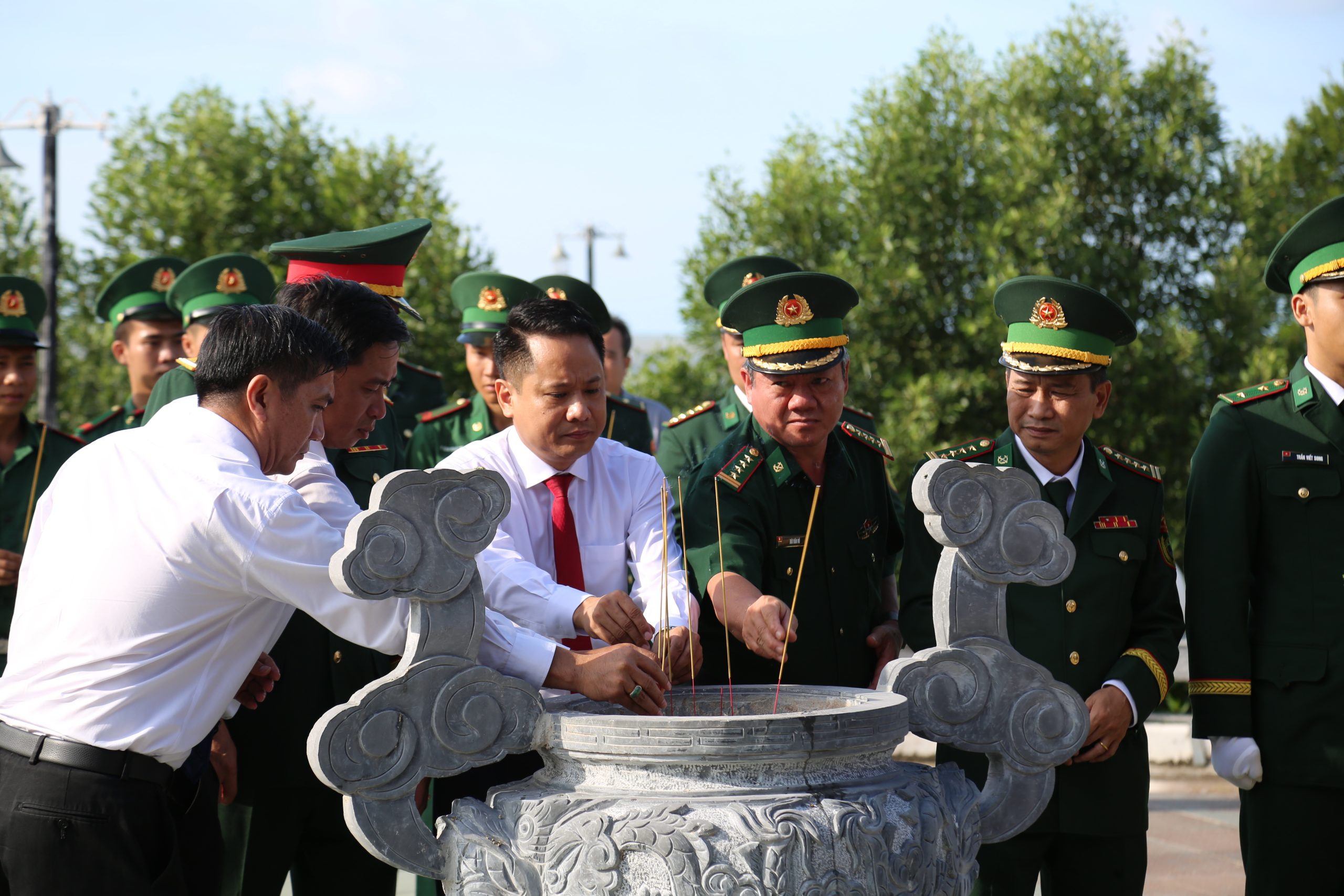 Sáng ngày 6/10, Đoàn tổ chức Lễ dâng hương tại Đền thờ Đức Quốc Tổ Lạc Long Quân toạ lạc trong Khu du lịch Mũi Cà Mau, thực hiện nghi thức dâng hương trong không khí thiêng liêng, trang trọng. Trong nghi lễ dâng hương Đức Quốc Tổ Lạc Long Quân, mỗi người không chỉ cúi mình tưởng niệm các tiền nhân, mà còn thắp sáng ý thức trách nhiệm với Tổ quốc, với sự nghiệp bảo vệ độc lập, toàn vẹn lãnh thổ. Đây là khoảnh khắc lắng đọng, thể hiện lòng thành kính tri ân tổ tiên, đồng thời nhắc nhở thế hệ hôm nay và mai sau về trách nhiệm bảo vệ non sông đất nước.