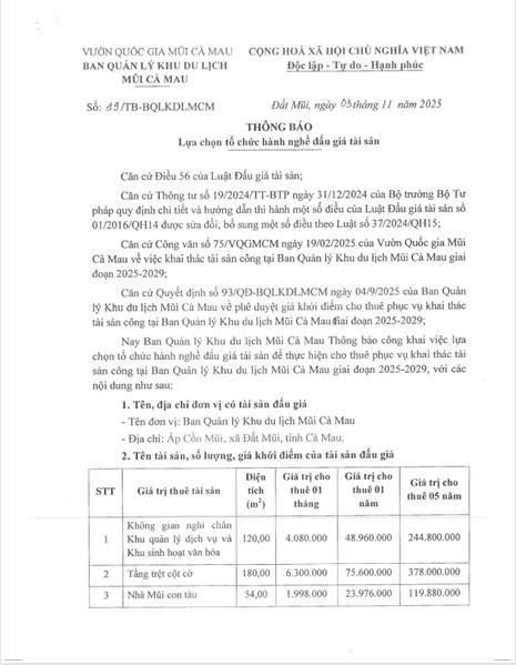 Trang chủ > Tin tức và Sự kiện > Thông báo > Thông báo lựa tổ chức hành nghề đấu giá tài sản