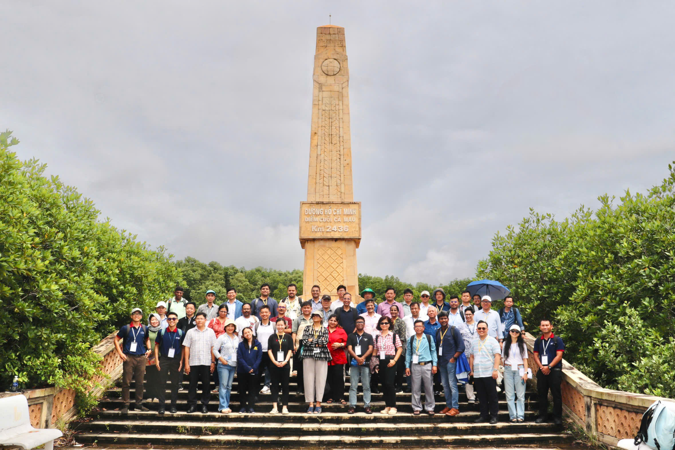 Đoàn Công tác chụp ảnh lưu niệm tại Mốc điểm cuối đường Hồ Chí Minh